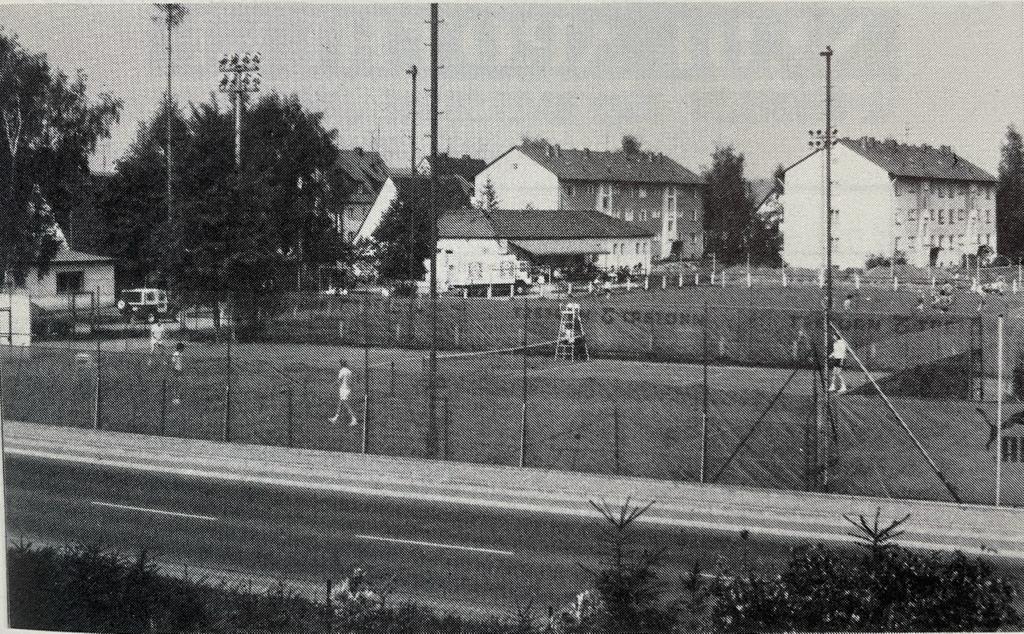 | 1964 | Der erste Arbeitsdienst ist für den 23. April angesetzt. Bereits im Mai können die Decken aufgezogen und die Plätze mit Linien versehen werden. Noch im gleichen Monat werden die zwei Plätze an der Forchheimer Strasse auf dem Gelände des ASV Baiersdorf offiziell eröffnet. Ein Kuriosum: Es gab Balljungen, die das Spielen für 1,- DM pro Stunde „erleichterten“. |